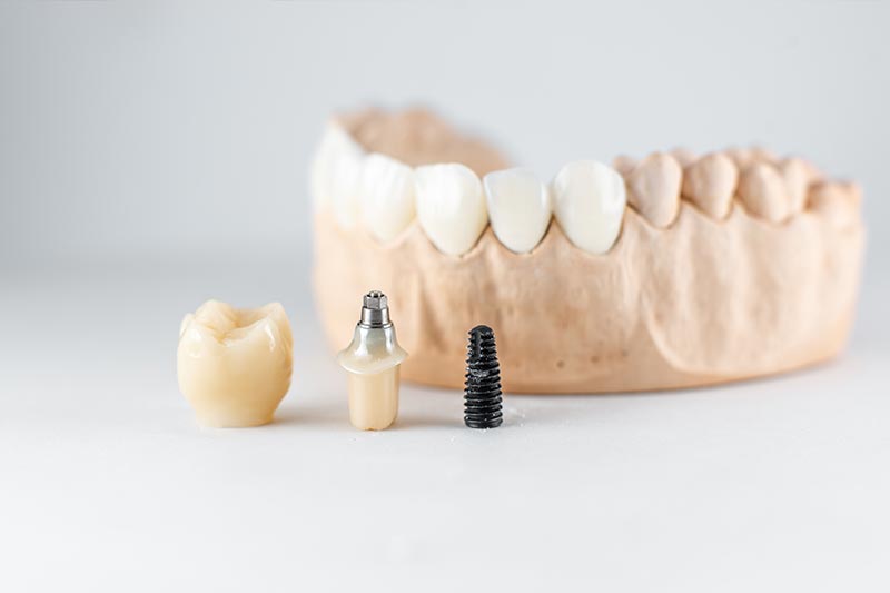 El implante dental es un elemento metálico fabricado de titanio que se coloca quirúrgicamente en la mandíbula. Está diseñado para